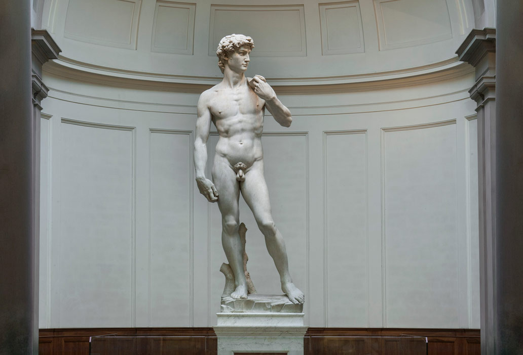 Il David di Michelangelo è considerato il capolavoro assoluto della scultura rinascimentale. Realizzata tra il 1501 e il 1504, l'opera rappresenta l'eroe biblico nel momento che precede la lotta contro Golia: la sua espressione è carica di concentrazione e determinazione, non di semplice forza bruta. Michelangelo scolpì la statua da un unico blocco di marmo di Carrara già parzialmente sbozzato. La perfezione anatomica e la tensione muscolare trasmettono una vitalità straordinaria, rendendo il David un simbolo di libertà e indipendenza per la città di Firenze. Oggi l'originale si trova alla Galleria dell'Accademia di Firenze, dove attira ogni anno milioni di visitatori da tutto il mondo.